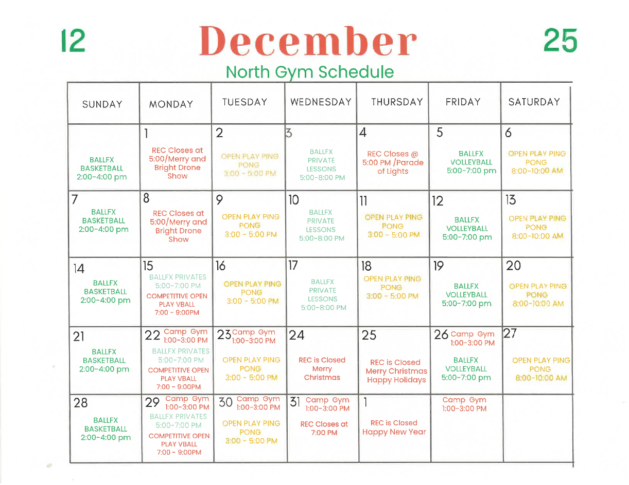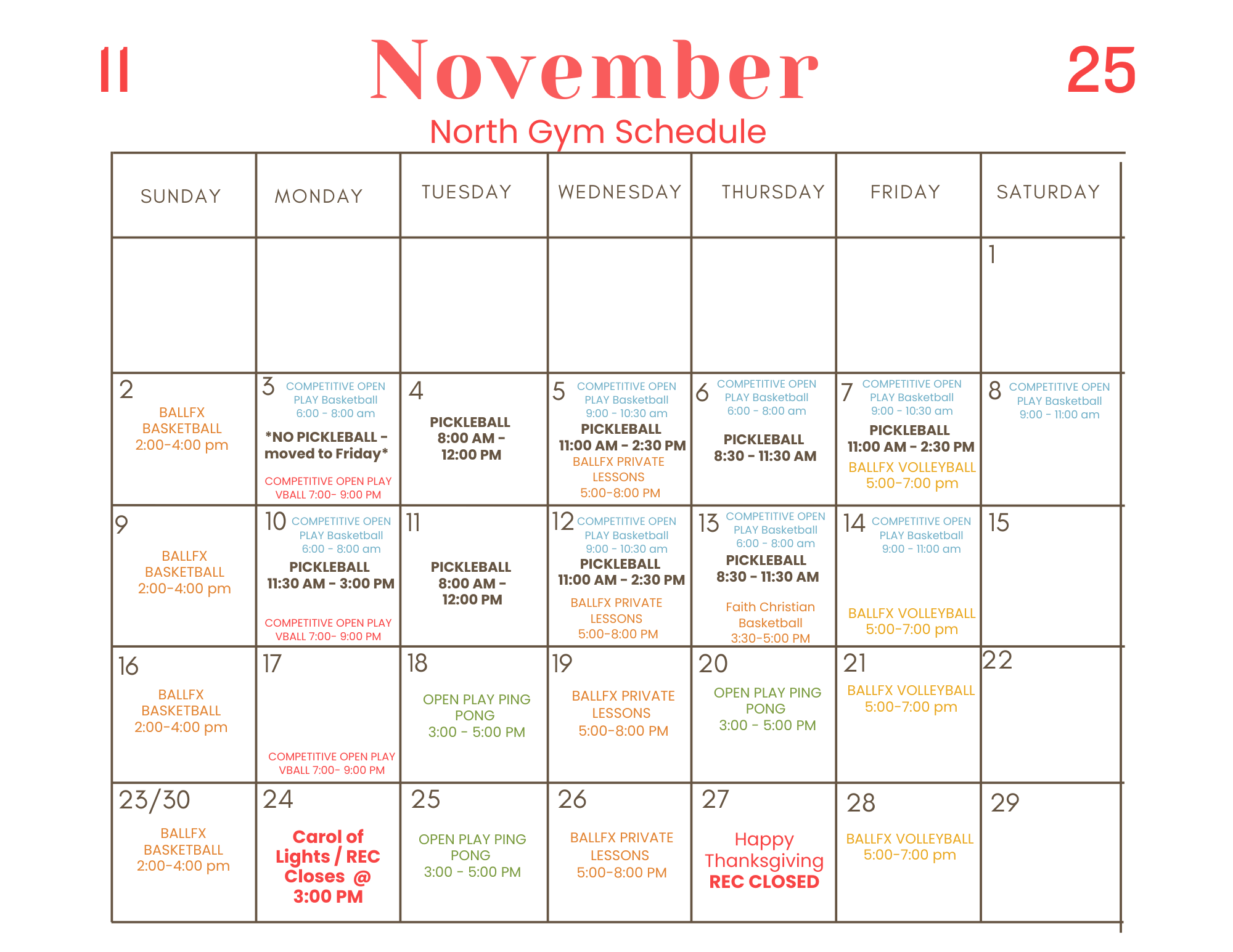 North Gym Schedule - November