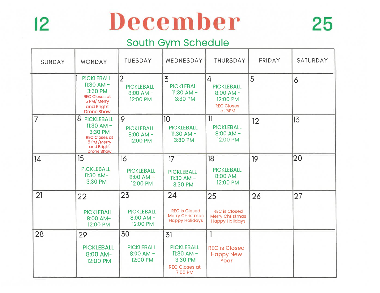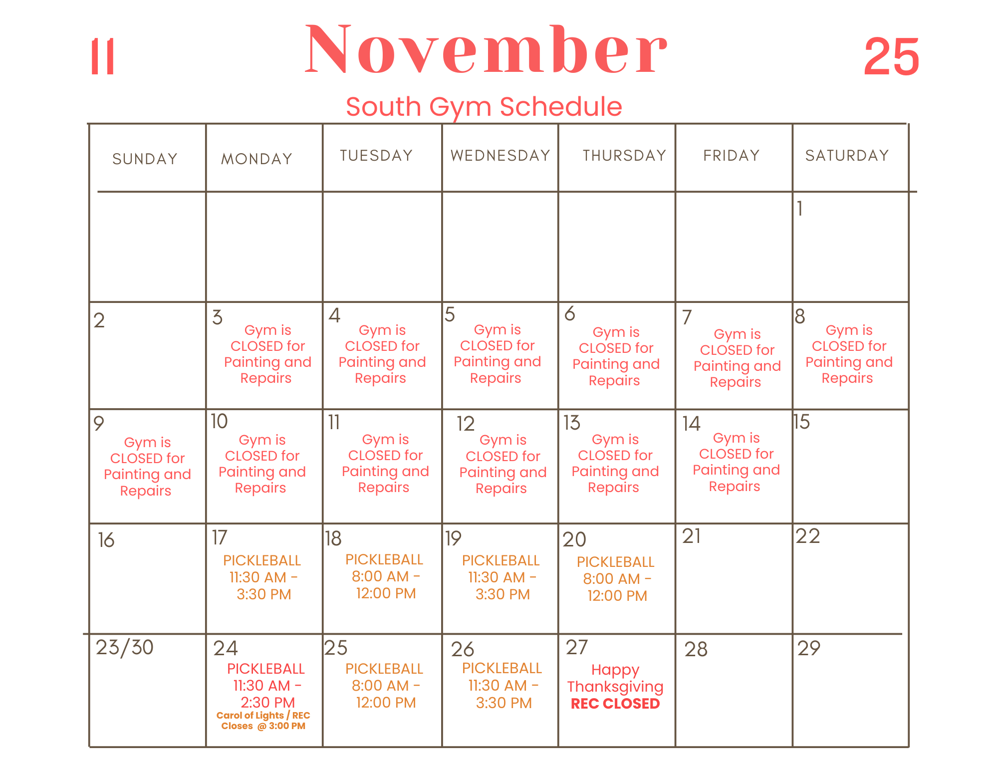South Gym Schedule - November